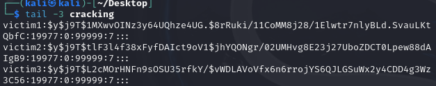 victim1 ,victim2 , victim3 세개의 계정모두 크랙킹 성공!