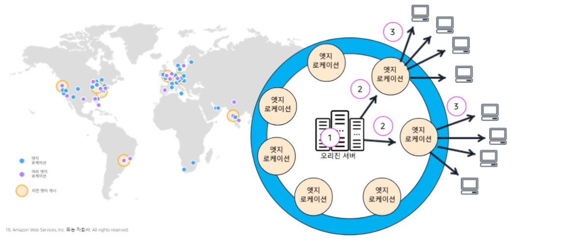 - AWS가 CDN 을 제공하기 위해서 만든 서비스인 CloudFront의 캐시 서버 (데이터 센터의 전 세계 네트워크)