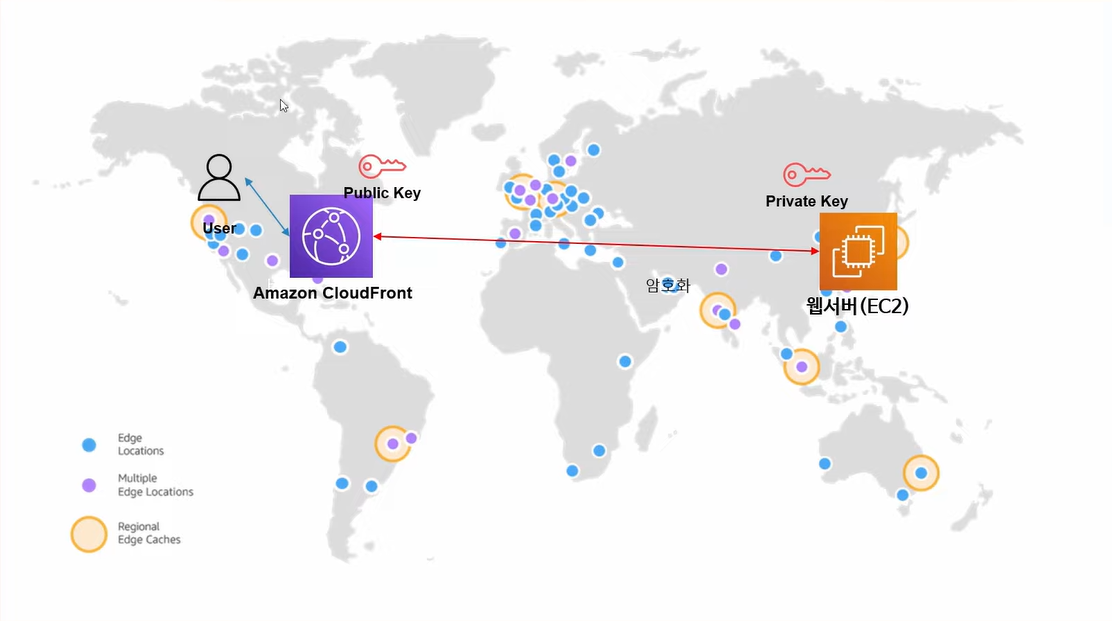 - 공개키 방식으로 암호화 → CloudFront에 공개키를 제공 후 Origin에서 Private Key로 해독