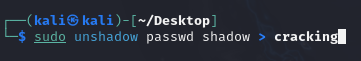 그후 unshadow 로 passwd 와 shadow 파일을 합쳐 > cracking