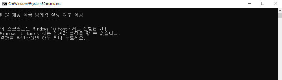 echo 경고: Windows 10 Home 버전에서는 계정 잠금 임계값을 설정할 수 없습니다.