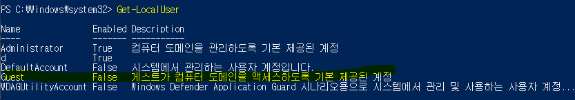 Guest 계정이 False 상태 (비활성화) 되어있기 때문에 점검 결과 양호로 뜬모습