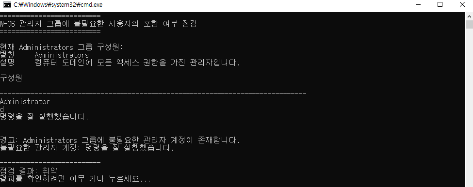 echo 경고: Administrators 그룹에 불필요한 관리자 계정이 존재합니다.