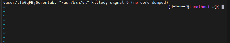 위 캡처 화면과 같이 /usr/bin/vi killed; signal 9 메시지가 뜨며 튕겨져 나갔습니다.