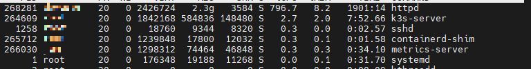 확인 결과, 악성 httpd 프로세스는 모두 사라졌으며 시스템 부하도 정상화되었습니다.